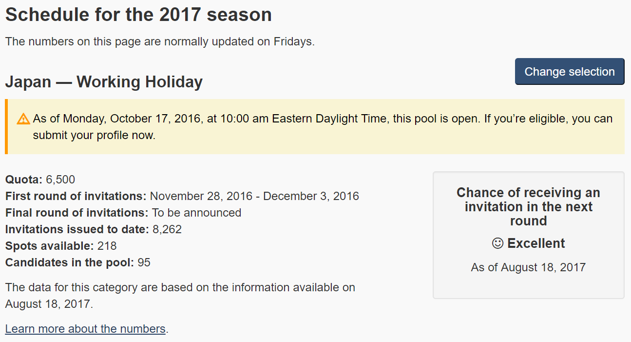 ただ、「Chance of receiving an invitation in the next round」は「Excellent」なのですぐに申請をすればまだ大丈夫の可能性もあります。