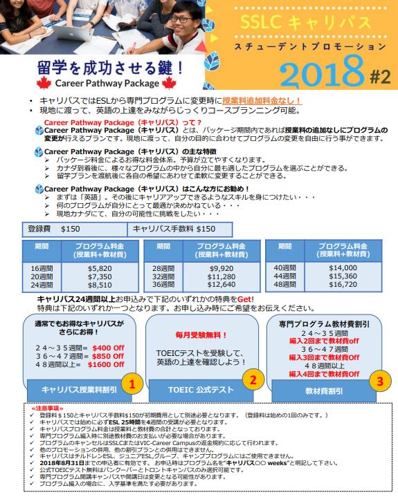 長期英語、専門留学の方に非常にお得なSSLCキャリパスパッケージのプロモーションのお知らせ