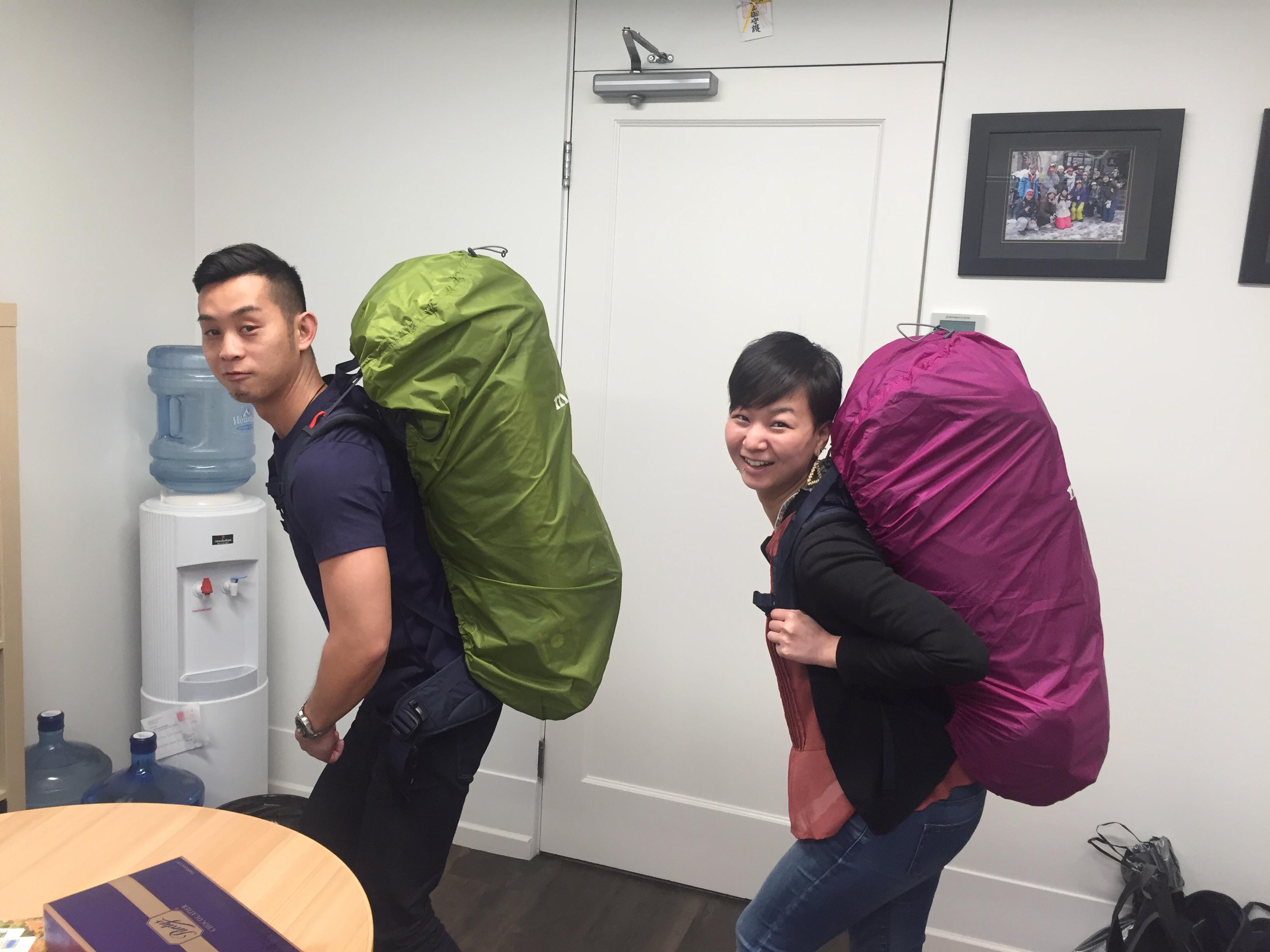 私たちも後ろに背負うものを背負ってみました、
