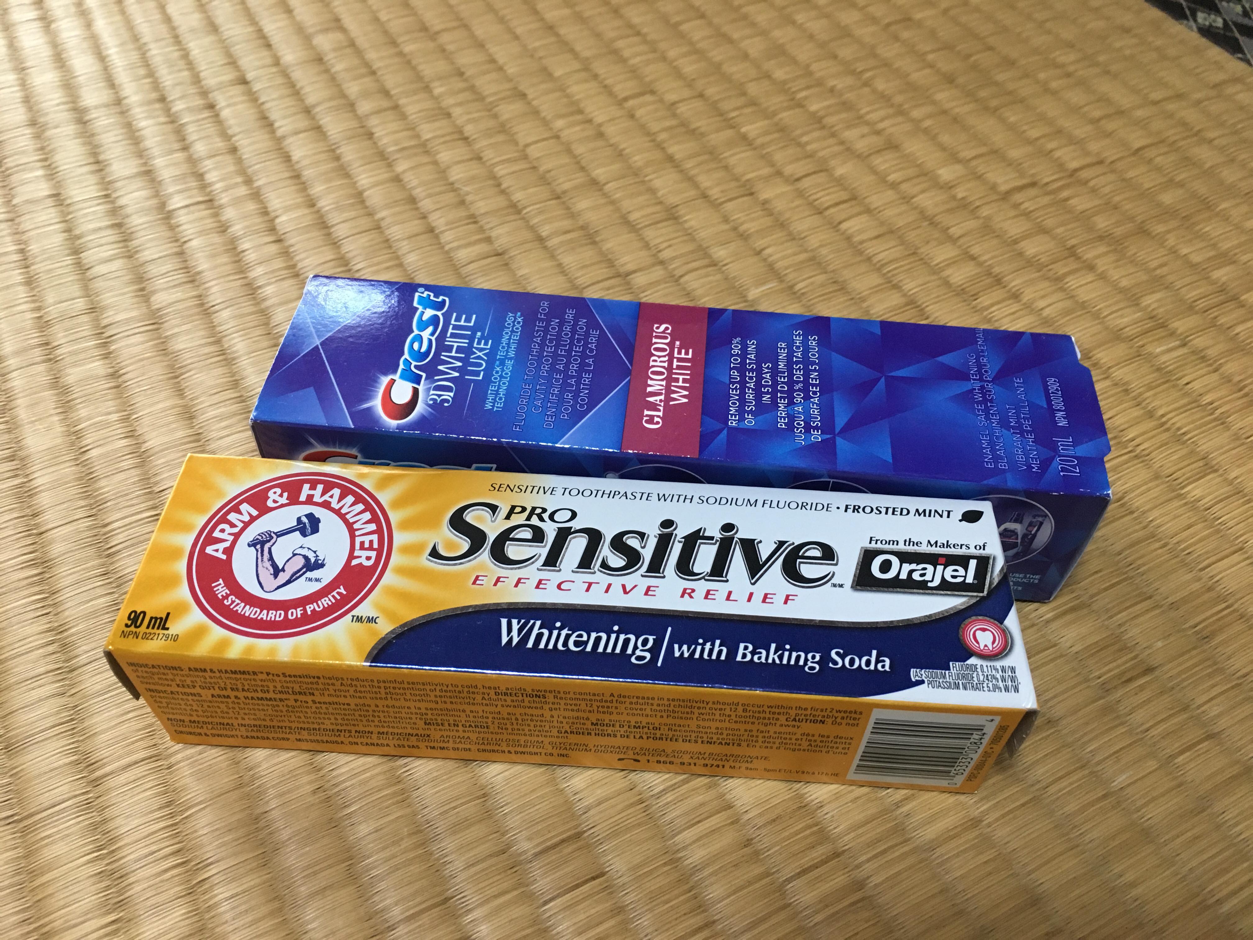 日本で許されている歯磨き粉内の漂白成分の含有量とカナダで許されている含有量が異なり、カナダのものは白くなる!と評判です。