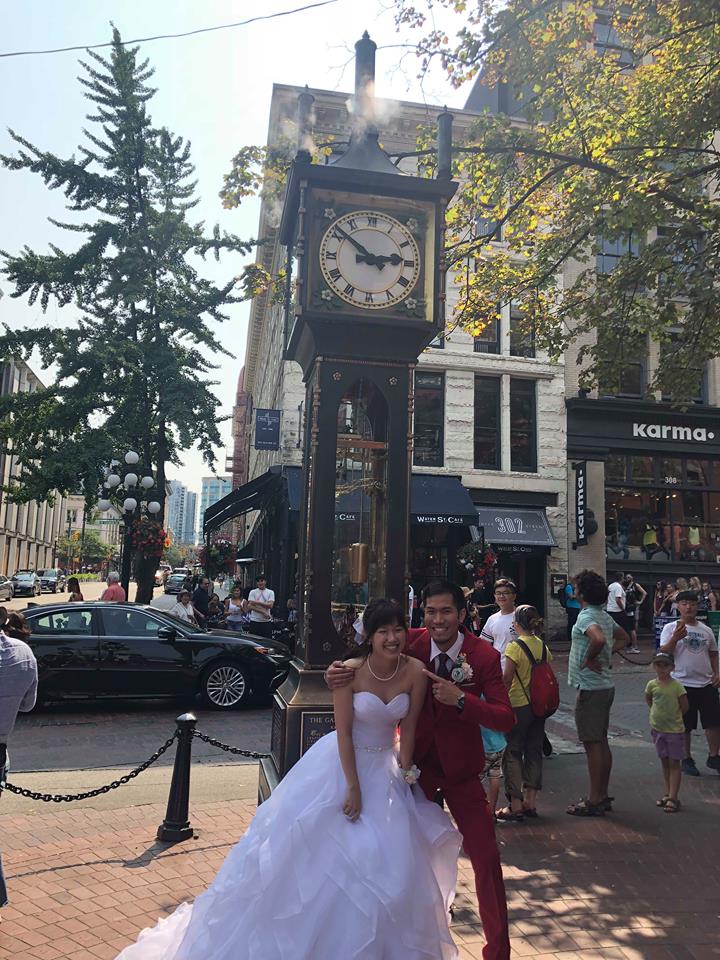 通学途中にいつも見ていた時計の前でのウェディングフォト撮影、人生どうなるか分かりませんね!