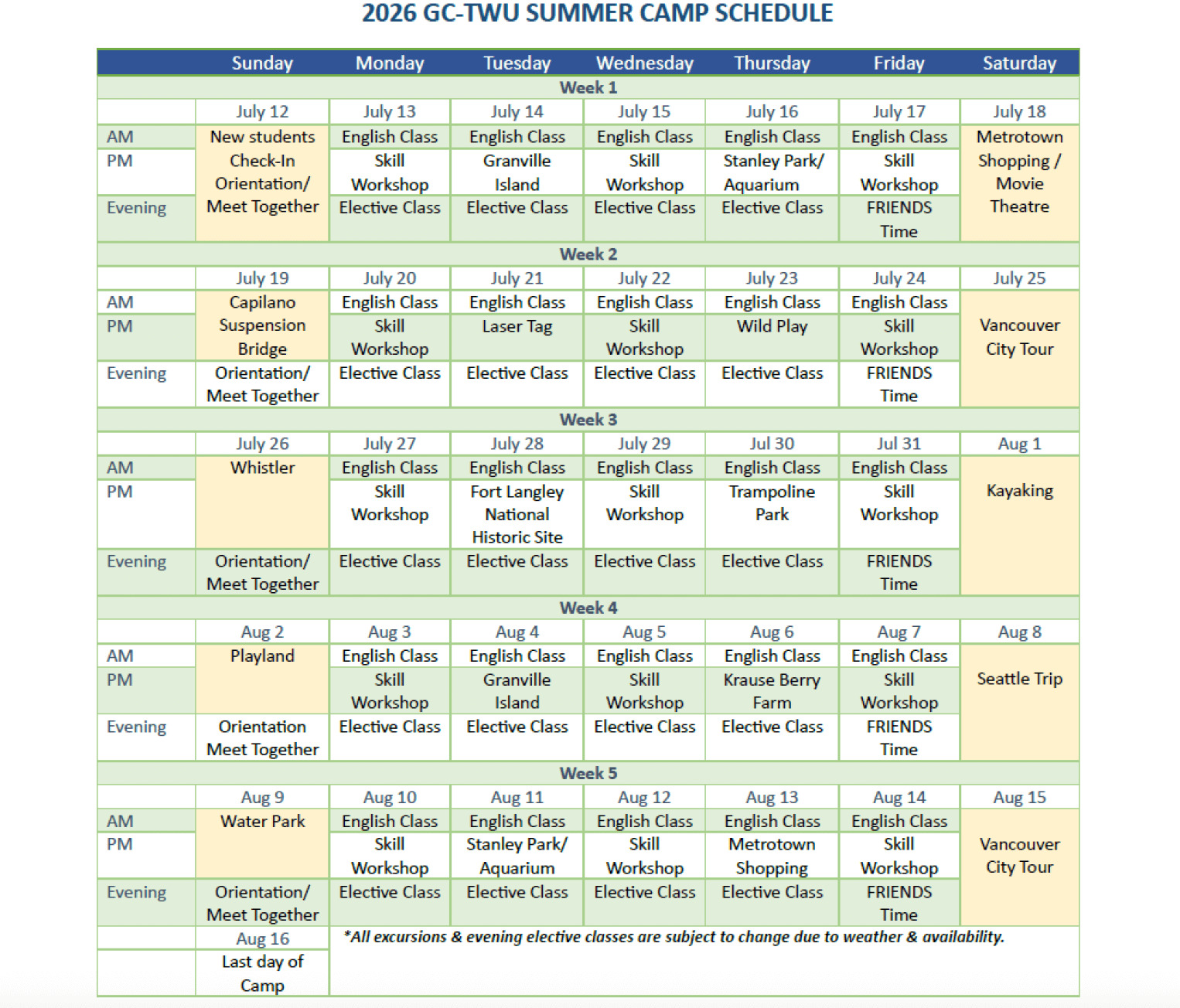 小中高生対象:大学寮滞在型2026年TWUサマーキャンプ(バンクーバー近郊)