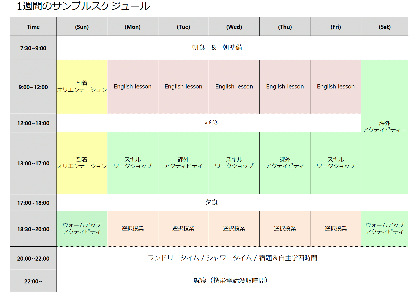 以下が参考スケジュールとなります。(サンプルプランですので変更になる可能性が有ります。)